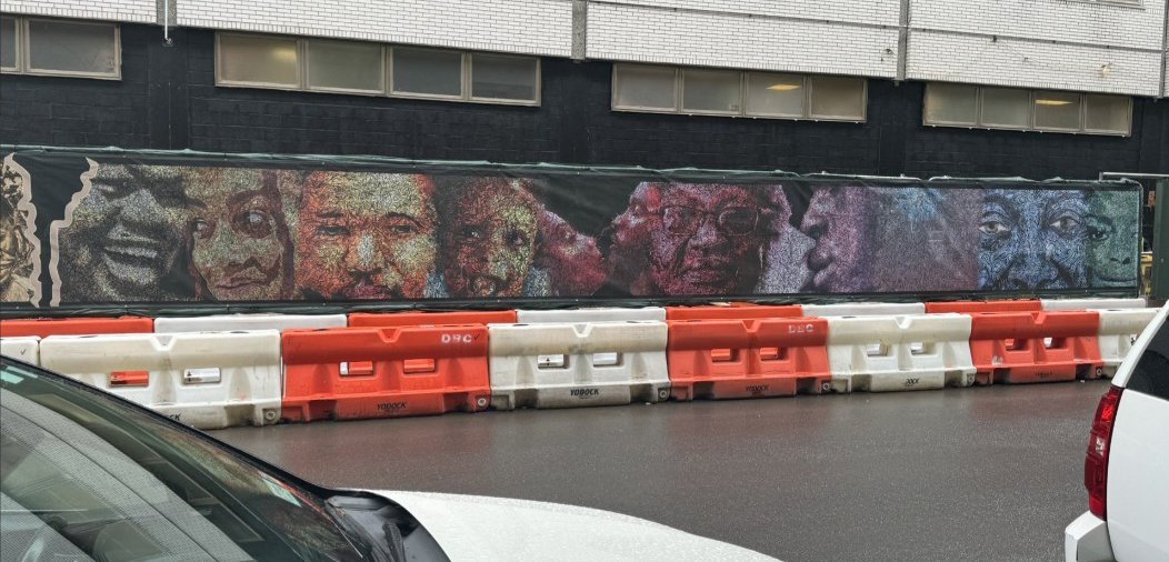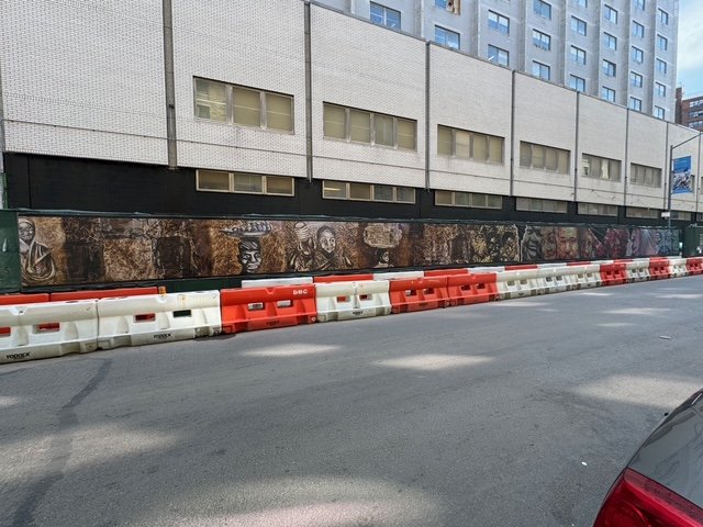 Dario Mohr, Founder and Director of the nonprofit organization, AnkhLave Arts Alliance Curated and collaged original artwork from Knii Shippie Afotey and Faith Omole, who serve as the inaugural African Indigenous Mural Project. Knii Shippie Afotey is of Ga tribal descent from Accra, Ghana and Faith Omole is of Yoruba descent from Nigeria. Mohr paid studio visits to both of them in their respective countries, photographed their work and included it in the mural, which was presented with with ArtBridge at NYC Health + Hospitals